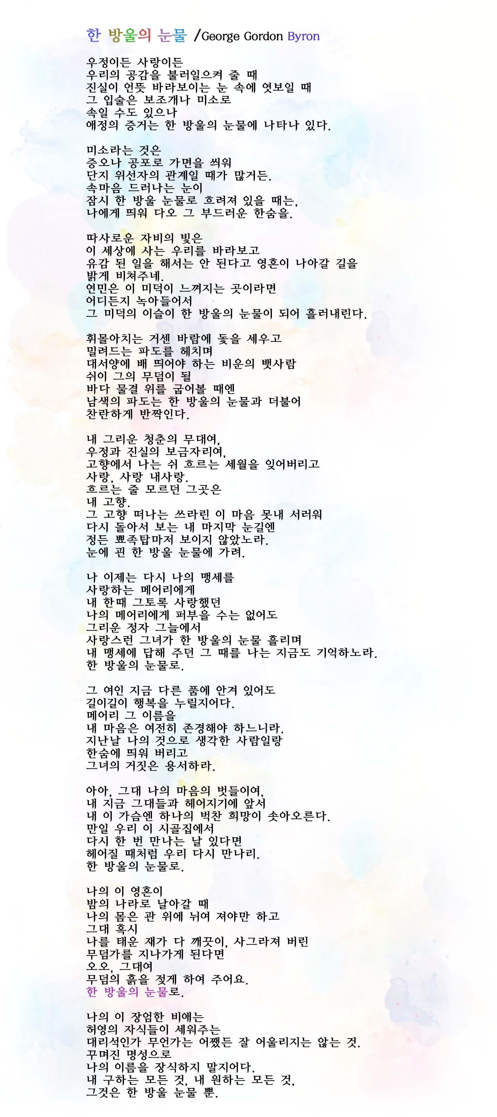 영국 낭만주의 시인을 대표하는 조지 고든 바이런 경의 이야기입니다.