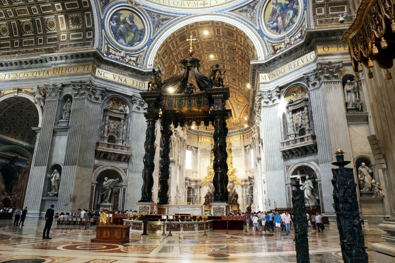 바티칸 산 피에트로 대성당(Basilica di San Pietro)에 있는 한가운데 서 있는 웅장한 모습의
