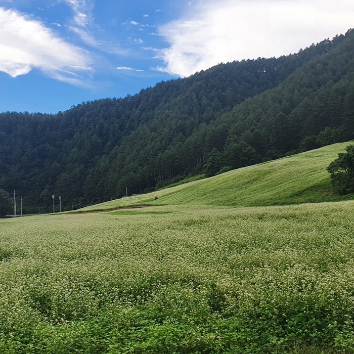 2022년 10월, ‘석포, 피어나다’ 프로젝트로 메밀꽃이 만개했던 석포면의 모습. 환경오염 지역이라는 오명을 떨치기 위해 면사무소 직원과 주민들이 기획한 환경조성 행동이었다.