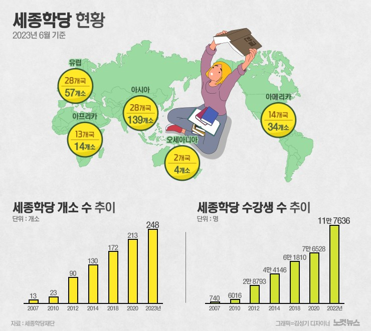 2027년까지 세종학당을 전 세계 350개소로 확대할 계획입니다.