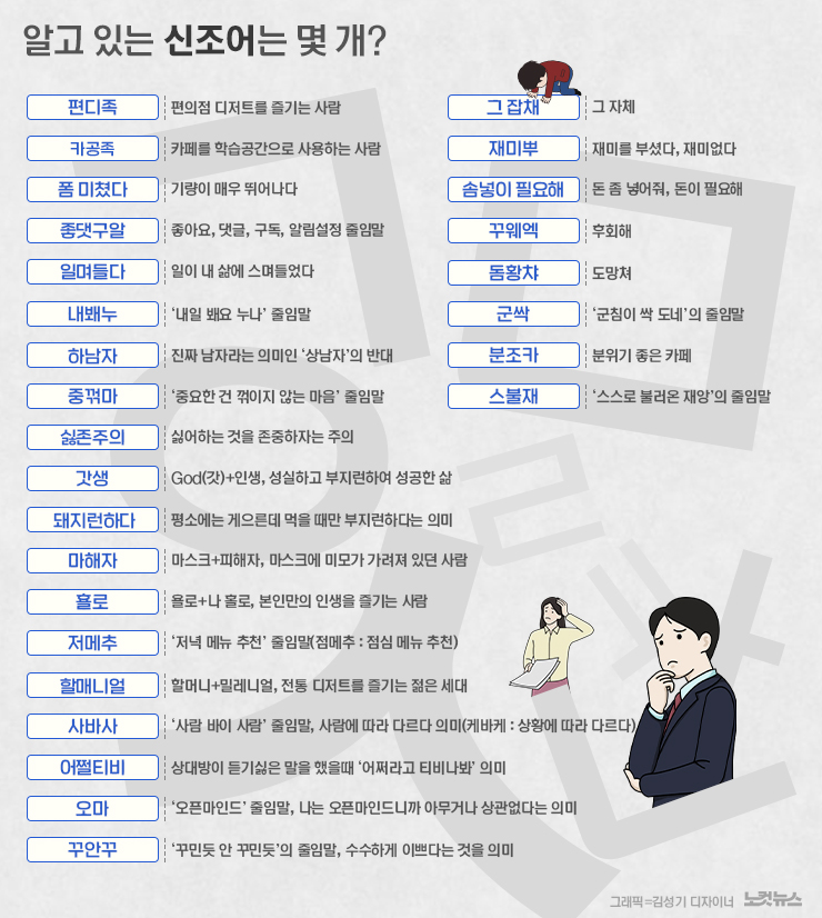 신조어들을 많이 사용하고 즐기는 젊은 세대와 달리