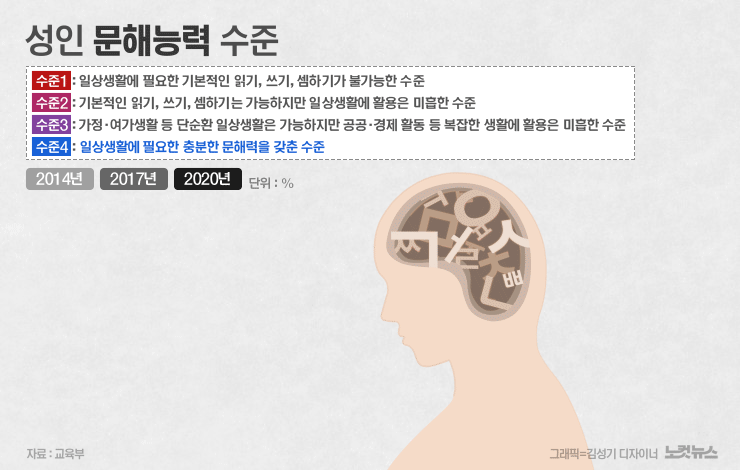 교육부가 2021년에 발표한 제3차 성인문해능력조사 결과에 따르면